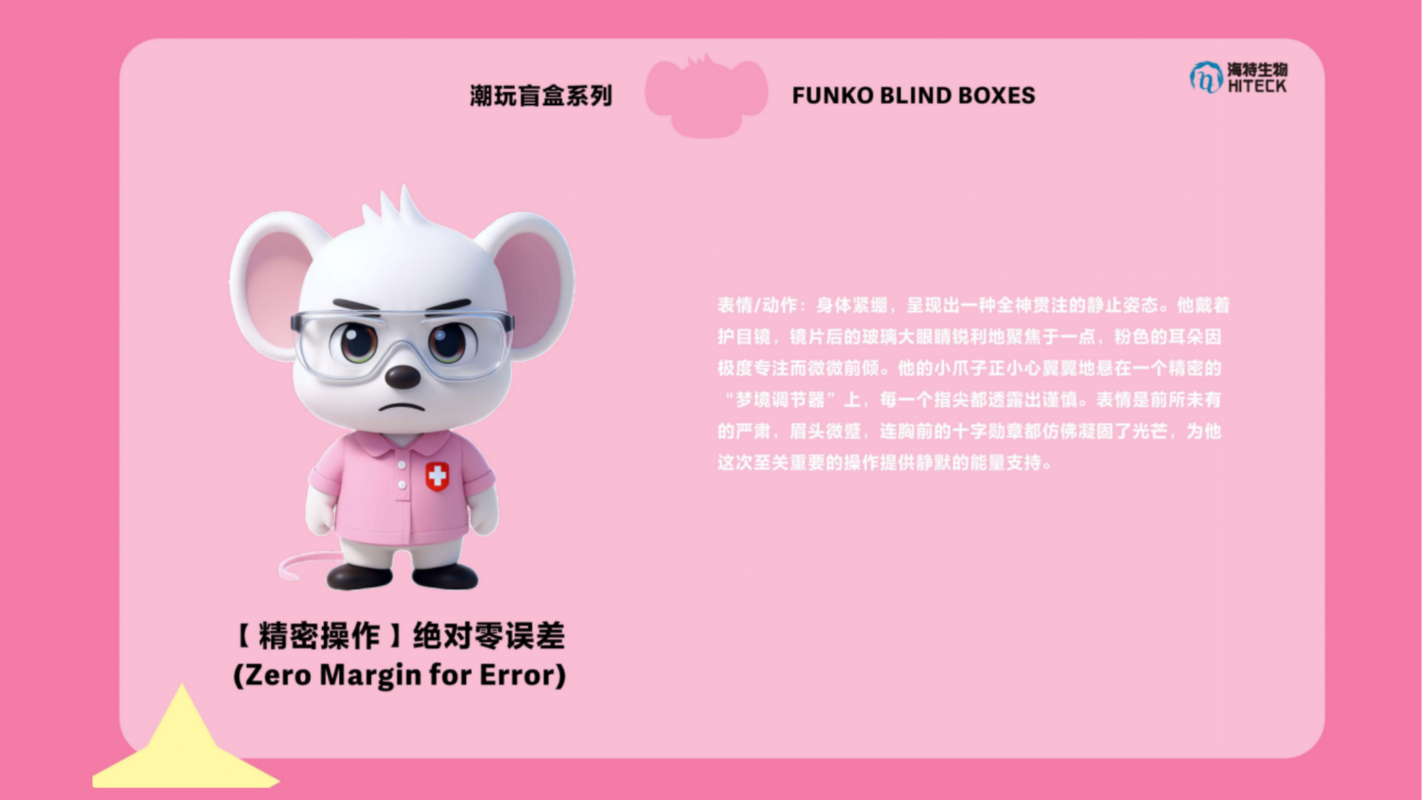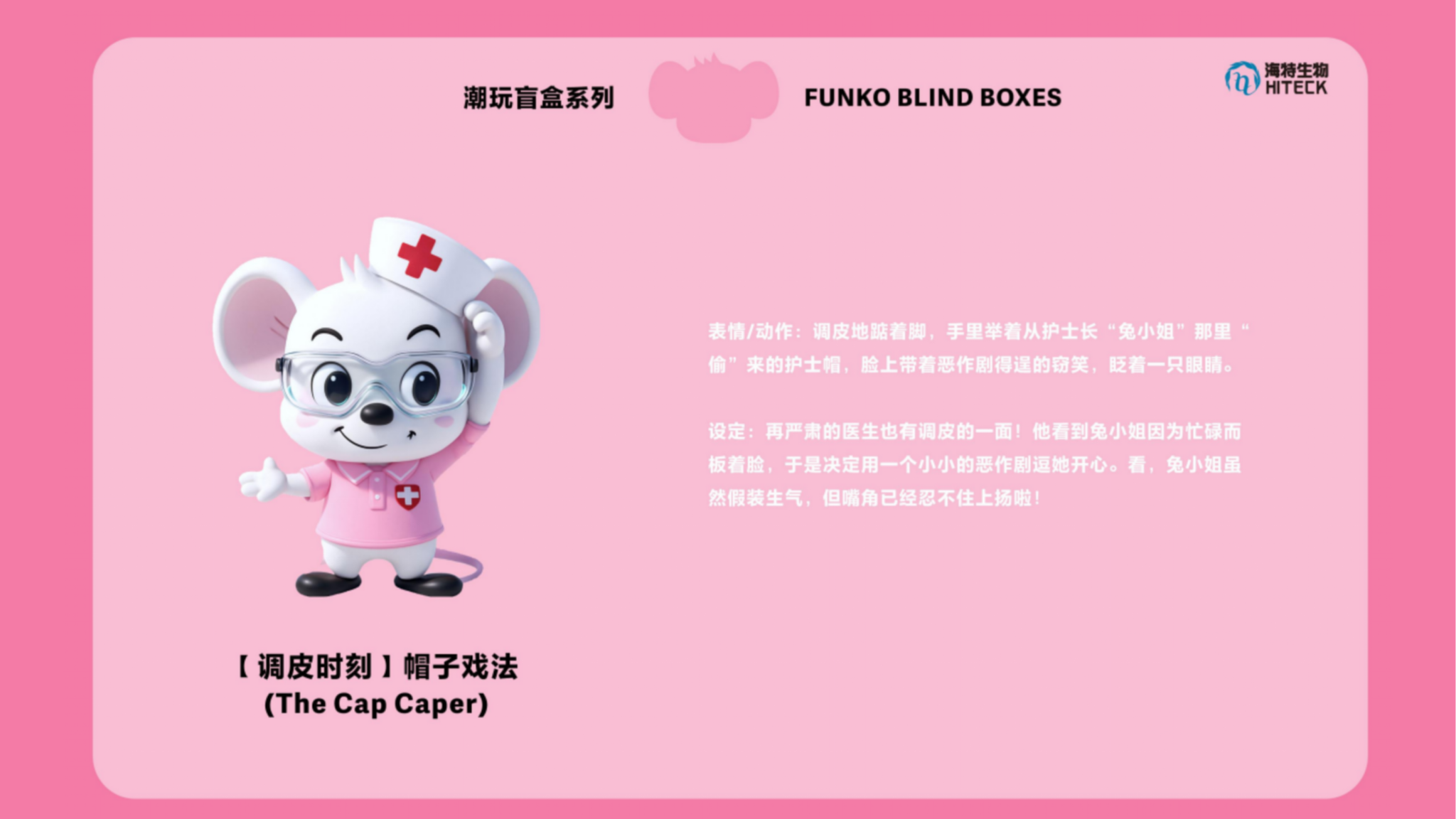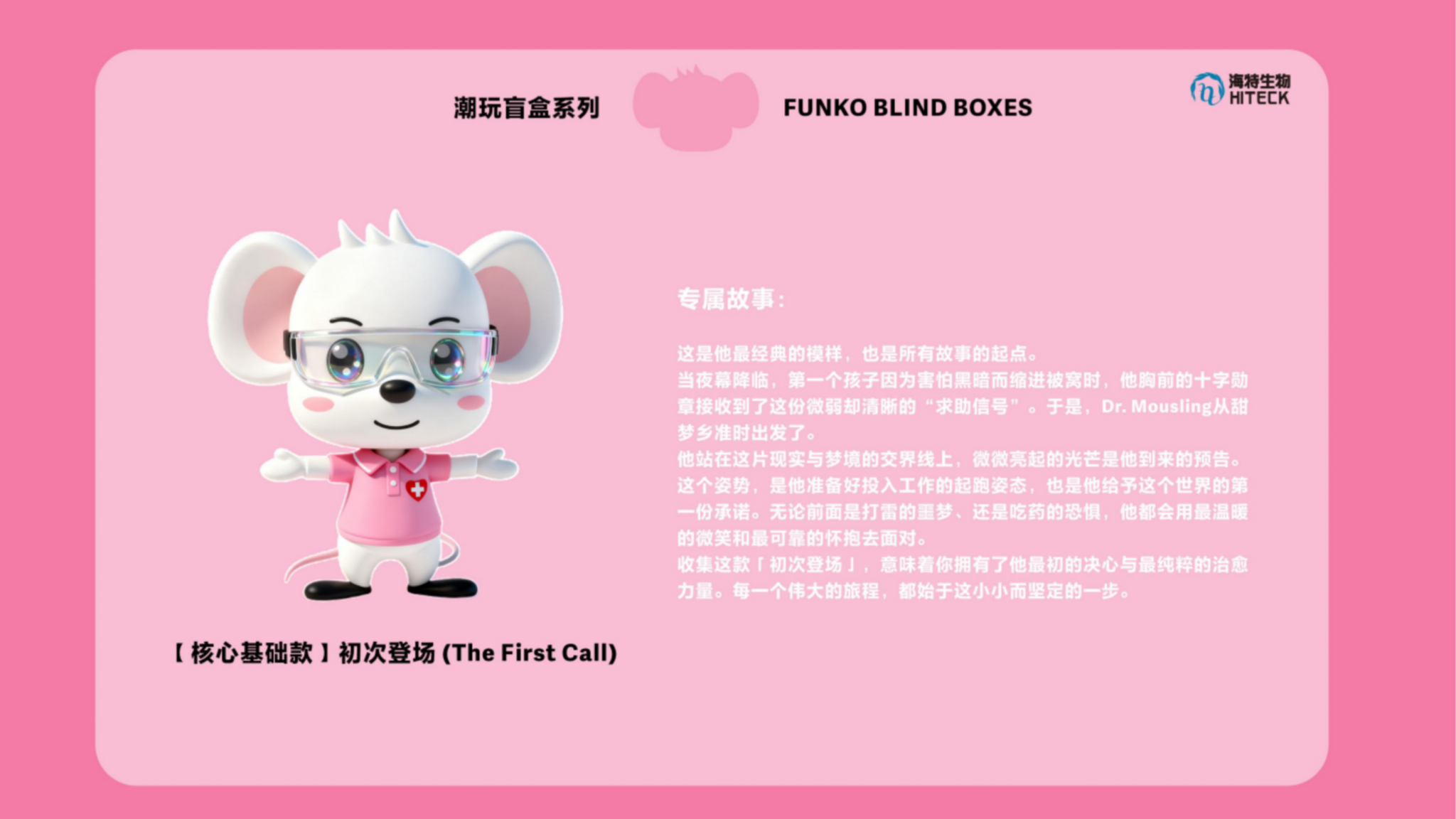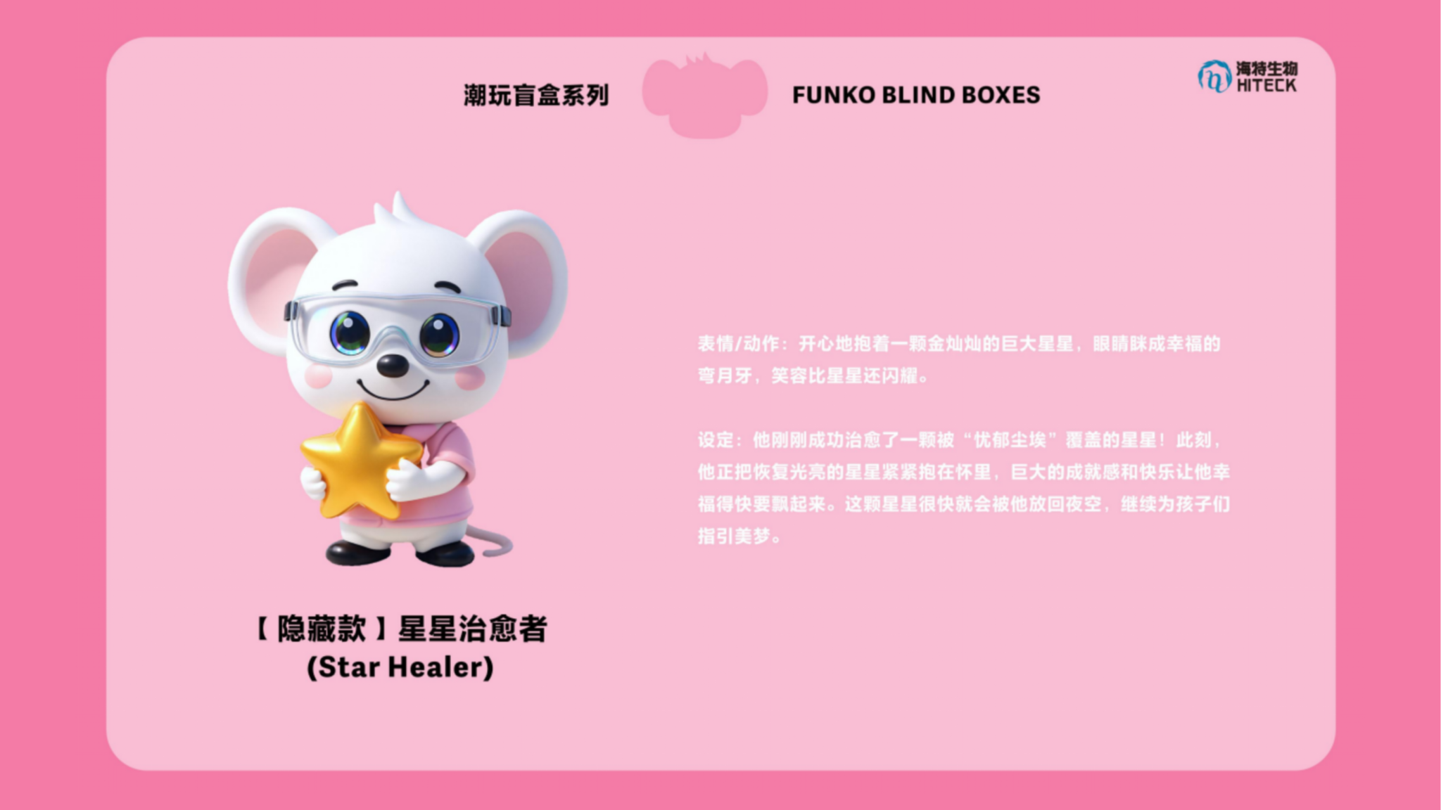 作品说明:本系列以“治愈之光”守护者--Dr.Mousling(医生侠)为核心,打造一套超萌治愈系盲盒。角色采用3D硬表面哑光材质,融合圆润娇憨的体态与精致细节:粉色大耳朵、护目镜与胸前发光十字架勋章,彰显其独特身份。全套设计生动捕捉了Dr.Mousling的日常瞬间:“安心微笑”是他治愈的本色;“严谨专注”时则化身一丝不苟的专业医师;成功拯救星星后“怀抱金星”的狂喜、“调皮窃帽”的恶作剧、“月牙休憩”的慵懒享受,以及面对难题时的“疑惑不解”和遭遇意外的“惊讶炸毛”,共同构成他丰富可爱的情感宇宙。