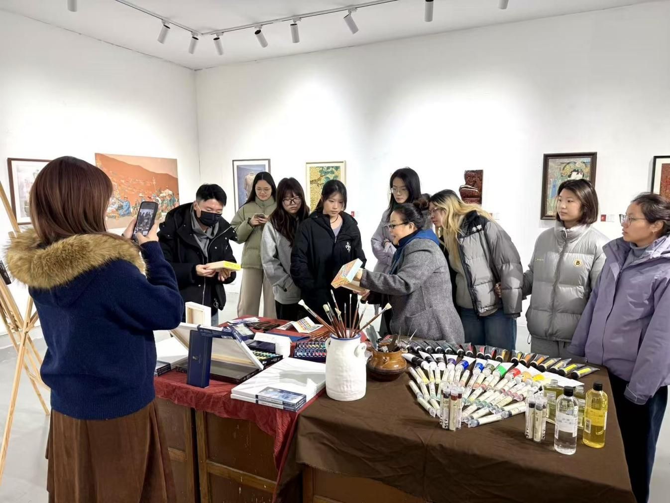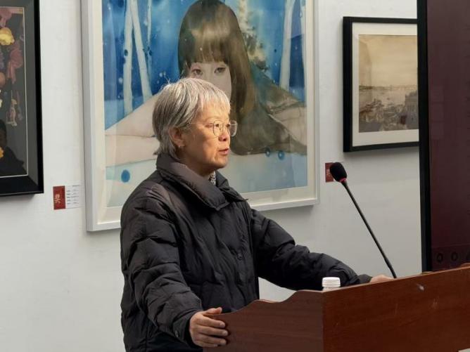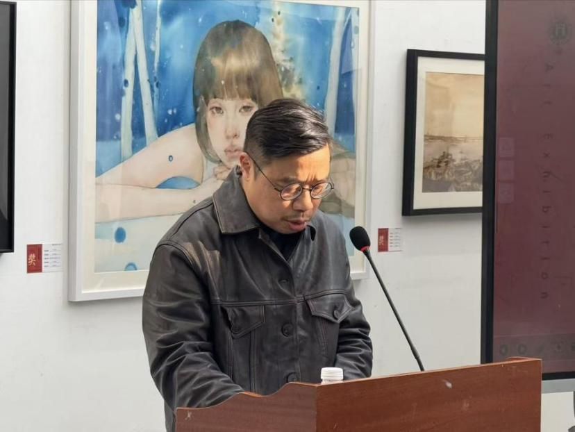 钱征洪表示,本次展览是校企协同育人成果的生动体现。他介绍江苏凤凰画材科技股份有限公司在材料研发、艺术推广和青年培养方面的持续投入,并表达了与学校师生进一步拓展交流、深化合作的愿望。