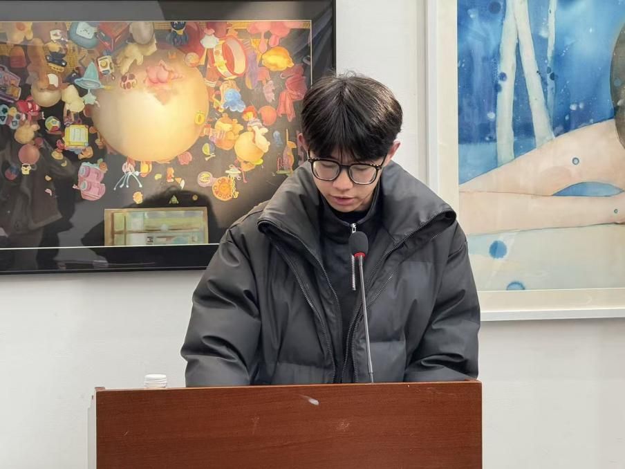 徐文涛代表绘画学院向奖学金捐赠方致以诚挚谢意。他指出,企业设立专项奖学金既是对学生的物质支持,更是精神激励,彰显了优秀企业的社会责任与教育情怀。他希望获奖学生能将这份荣誉转化为学习钻研的动力,期待双方进一步加强校企合作,取得丰硕成果。